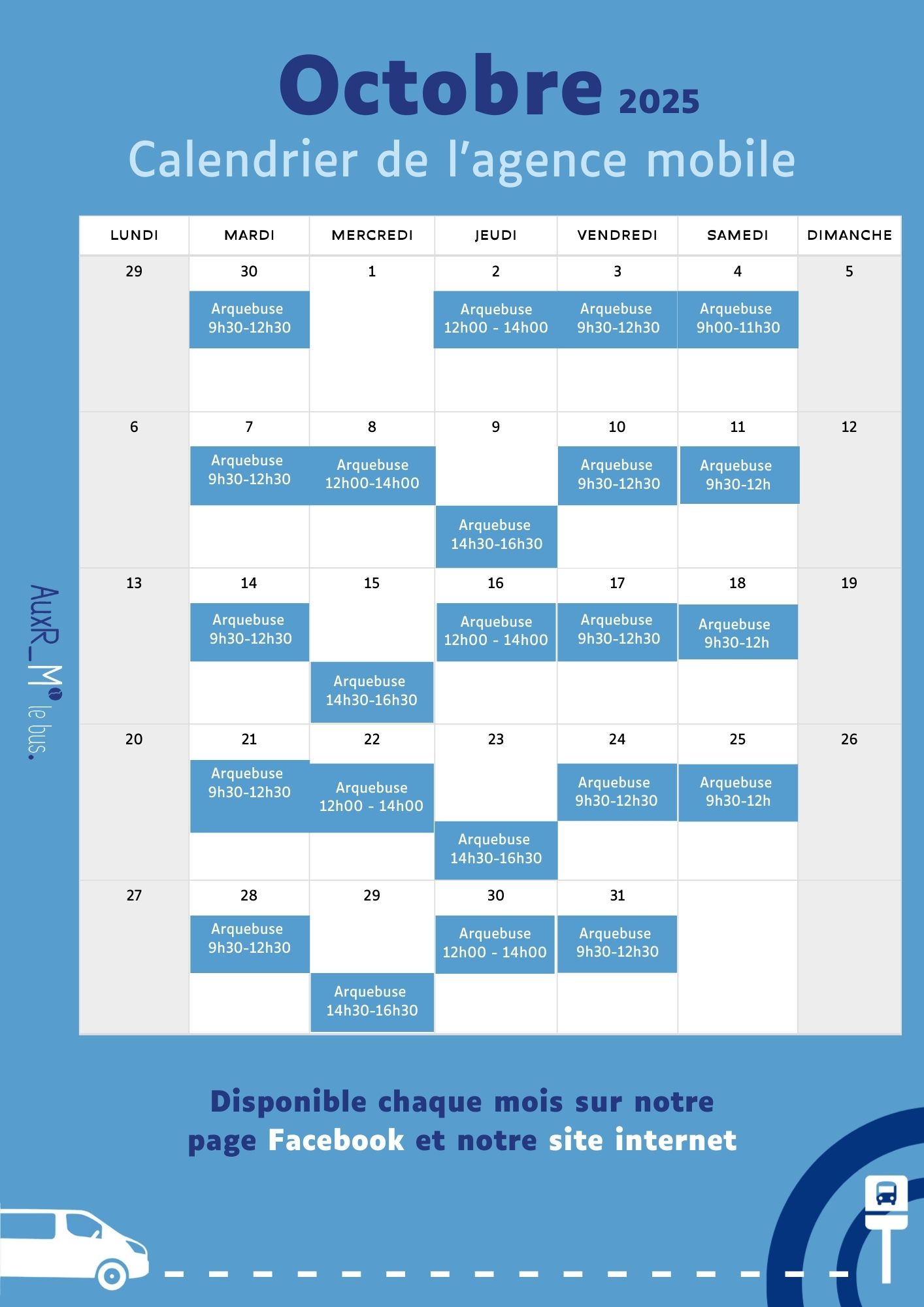 Retrouvez le planning de l'agence mobile pour le mois d'octobre 2025 !