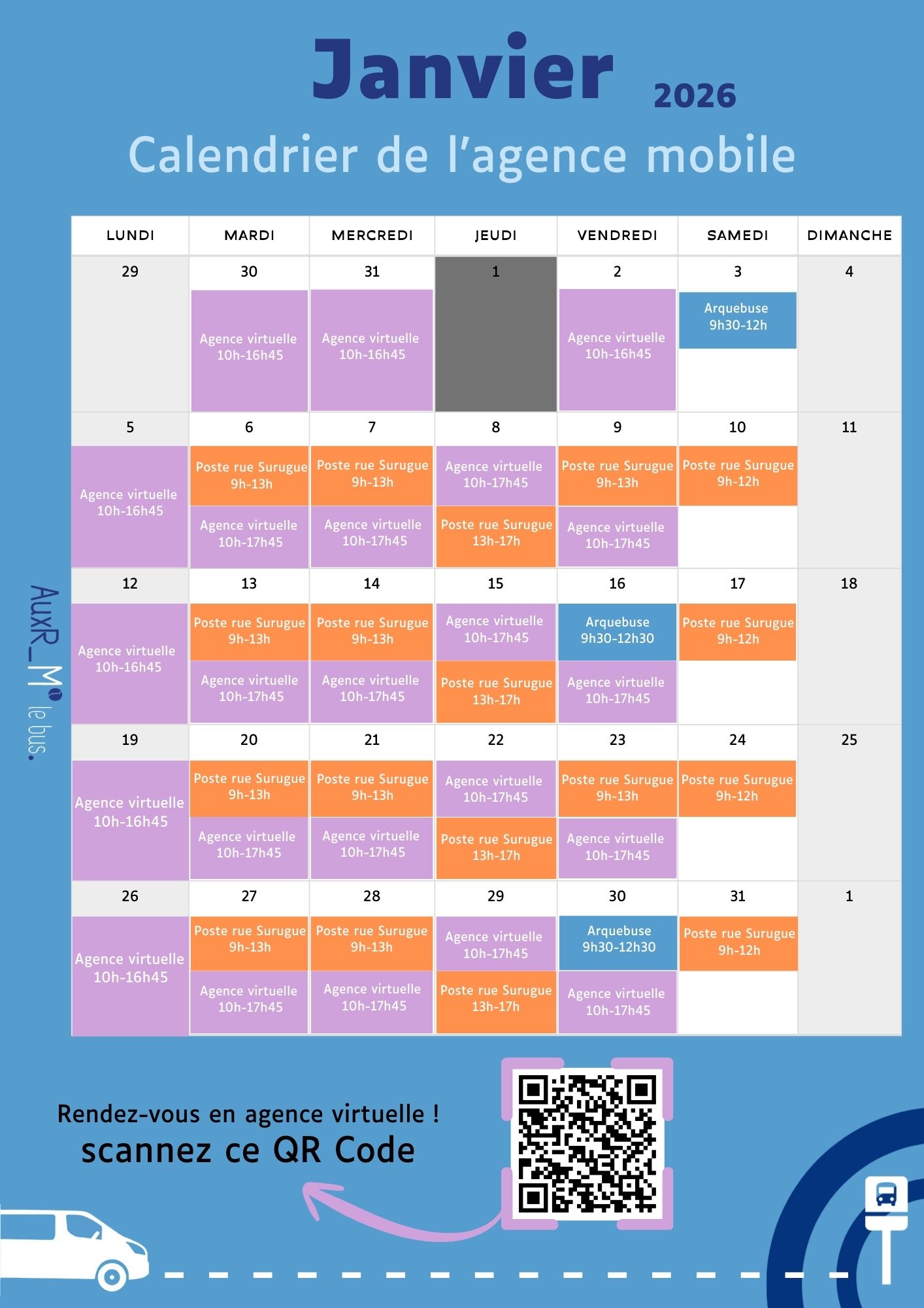 Planning de l'agence mobile janvier 2026